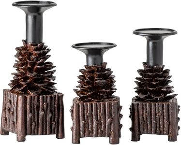 Light up your home with The Crestview Collection Pinola Candle Holders -- perfect for your mantle or fireplace. These dark brown resin Candle Holders feature a pine cone design and are ideal for your rustic style decor. Ranging in height these Candle Holders each measure 8-inches, 9-inches and 12 inches.Read More
