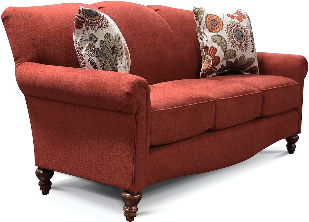If you are looking for a petite sofa with loads of charm, then Eliza might be just what you're looking for. Its rolled panel arm, camel back, and curved front rail, give it a ton of style! We offer a matching loveseat, chair, rocking chair, and ottoman.Read More