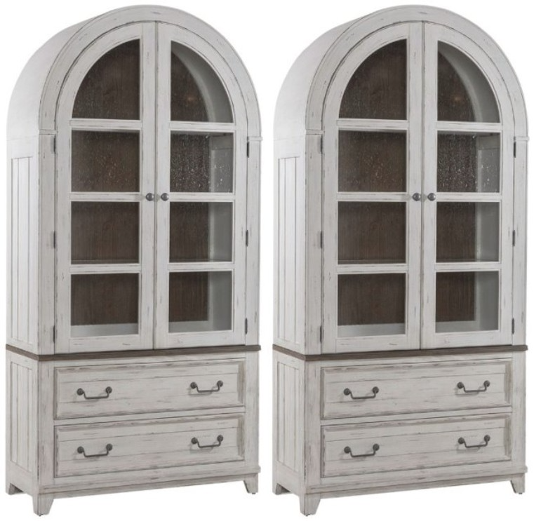 Designed to entice a sense of calm and tranquility into interior spaces, the River Place bunching curio set strikes the perfect balance of life on the coast and a comfy home tucked away in the hills. This set features a heavily distressed riverstone white and tobacco finish and includes two curio cabinets.Read More